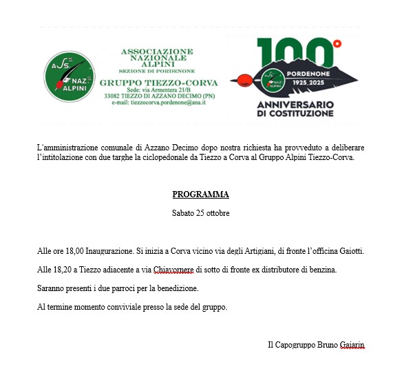INTITOLAZIONE CICLOPEDONALE AL GRUPPO DI TIEZZO-CORVA
