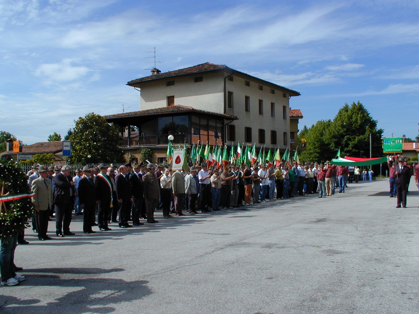 Una giornata indimenticabile quella vissuta a Cavasso Nuovo, domenica 28 giugno, per l’inaugurazione della nuova sede del Gruppo. Nell’aria frizzante del mattino presso il piazzale della Casa di Riposo si sono radunati gli Alpini giunti in paese per condividere con i loro “fradis” il momento magico. Il Capo Gruppo Osvaldo Sartor riceveva le autorità: il Sindaco Emanuele Zanon, il Vice-Pres. del Cons. Regionale Maurizio Salvador con l’Ass.re Reg. Elio De Anna, il Pres. del Cons. Prov.le Mario Zambon con l’Ass.re Prov. Giuseppe Bressa, il Magg. Antonio Esposito per il C.do Brigata Julia, il M.llo Govanni Esposto, Vice C.tela StazioneCCdi Maniago ed infine, graditissimo ospite, il Gen. C.A. Bruno Iob, già C.te delle Tuppe Alpine e poi delle Forze Terrestri. Per la nostra Sezione erano presenti il Presidente Gasparet ed i Vice-Pres. Sez. Gianni Antoniutti, Aldo Del Bianco, Umberto Scarabello e il Resp. di Zona Tullio Perfetti con i Cons. Sez. Ambrosio, Barbui e Reffo. Oltre ai Gagliardetti dei Gruppi di Andreis, Arba, Aviano, Barcis, Budoia, Chions, Claut, Clauzetto, Castelnovo, Fanna, Giais, Lestans, Malnisio, Maniago, Marsure, Montereale V., Orcenico Inf., Palse, Sacile, San Giorgio della R., San Leonardo, Sequals, Spilimbergo, Rorai Piccolo, Tiezzo-Corva, Torre, Vajont, Valcolvera-Frisanco, Valmeduna, Val D’Arzino, Valtramontina, Valvasone, Vigonovo, Villotta-Basedo, Vito D’Asio, Vivaro e, ovviamente, Cavasso Nuovo, partecipavano quelli di Gruppi amici come: Maiano (Sez. di Udine), Alcenago e Grezzana (Sez. di Verona), Rosà (Sez. di Bassano del G.), Carpineti, Reggio Emilia, Valestra e Villaberza (Sez. Reggio Emilia). Era anche presente il Vessillo dell’AIDO locale. Puntuale la sfilata raggiungeva piazza Plebiscito, sostando e schierandosi davanti al Monumento dove, dopo l’Alzabandiera, venivano resi gli Onori ai Caduti con la deposizione di una Corona d’Alloro. Successivamente, la sfilata riprendeva fino alla nuova sede, dove, autorità e partecipanti si schieravano nell’antistante parco verde intitolato a Padre Marco d’Aviano. All’architettura moderna e funzionale, la sede accostava il rispetto della tradizione, infatti, nell’area del parco era stato realizzato un Cippo dedicato ai Caduti con i pennoni per le bandiere ed inoltre, sull’estremità sinistra della palazzina, era stato collocato lo storico scarpone in cemento del peso di oltre180 Kg, realizzato nel 1939, proprio 70 anni fa, dal valente artigiano Sebastiano Della Valentina, Alpino reduce congelato dell’Adamello. Scarpone sul quale, oltre allo stemma del “10° Rgt.” (così era denominata l’A.N.A. in quegli anni), si legge ancora “Plotone Cavasso Nuovo” (i Gruppi si chiamavano infatti plotoni). Ricordiamo che lo scarpone è stato portato per molti anni alle Adunate Nazionali. Il Vice-Presidente Scarabello dava inizio alla cerimonia con l’Alzabandiera e poi si entrava subito nel vivo della manifestazione con il saluto del Capogruppo Sartor il quale, con grande sensibilità, in apertura rivolgeva un breve pensiero all’Alpino Franco Béllus, sempre presente e molto attivo nei lavori nel Gruppo, andato avanti da 25 giorni. Successivamente, illustrava le varie fasi della costruzione, esprimendo il ringraziamento alle istituzioni comunali per la fiducia e per la concessione del terreno con la fatiscente struttura pre-esistente che gli Alpini rifacevano, ricavando la nuova sede, battezzata “Ritrovo Alpino”, dove potranno incontrarsi, per essere sempre pronti ed attivi in caso di bisogno ed anche per trascorrere momenti in allegria. Dato che le braccia dei suoi Alpini non sarebbero state sufficienti a realizzare l’opera senza l’aiuto di contributi e materiali, Sartor menzionava le Istituzioni che avevano sostenuto l’iniziativa, in particolare il Vice-Pres. Maurizio Salvador, l’ex Amministrazione Comunale, l’Ass.re Reg. Elio De Anna, il Presidente della Provincia Alessandro Ciriani, la Bancadi Credito Cooperativo di S.Giorgio e Meduno ela Fondazione CRUP.Elencava, quindi, le numerose aziende meritevoli per aver fornito materiali per la costruzione della sede. Il Sindaco Zanon si associava a quanto detto dal Capogruppo nella riconoscenza per gli aiuti forniti, confermando che, con questo ulteriore traguardo, gli Alpini hanno dato ancora una volta un esempio positivo. Faceva eco l’Ass.re Prov. Bressa che evidenziava come i valori espressi dagli Alpini rimangano un prezioso riferimento per le comunità. Prendeva la parole l’Ass.re Reg. De Anna che, paragonando gli Alpini alle api operaie, ne ricordava la laboriosità, solidarietà, impegno e concretezza riscontrate in tutti i Gruppi, elementi che fanno ben sperare per il futuro della nostra società. Concludeva gli interventi il Presidente Sezionale Gasparet che si associava nel ringraziamento per la presenza dei numerosi rappresentanti delle istituzioni ed in particolare il Gen. Iob. Ricordava l’intervento della nostra Sezione, dopo il terremoto, per costruire una struttura bi-familiare su terreno del comune, consegnata nel 1978, pagata con i fondi raccolti dalla Sezione di Pordenone. Citava anche l’altro importante intervento del 1998, relativo alla costruzione e ai rivestimenti delle mura di contenimento della chiesa parrocchiale. Metteva in risalto l’elevato numero di sostenitori, fatto questo di grande valore perché nella nostra società ci deve essere collaborazione tra chi ha la possibilità di dare e chi ha grande volontà di fare. Prendendo lo spunto da questo ultimo impegno, il Presidente esalta lo spirito che anima gli Alpini e che proviene dalla loro esperienza comune della naia, periodo forse sopportato con qualche brontolio ma, vera scuola di vita che nel tempo dimostra di dare questi frutti. D’altra parte gli Alpini di Cavasso Nuovo sono sempre pronti a dare la loro opera quando c’è bisogno, compresa la costruzione della sede sezionale. Concludeva, lanciando un appello affinché tutti gli Alpini
