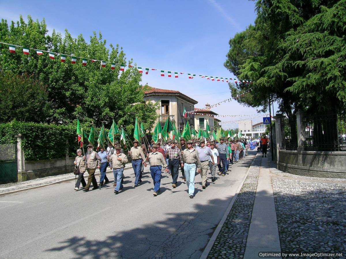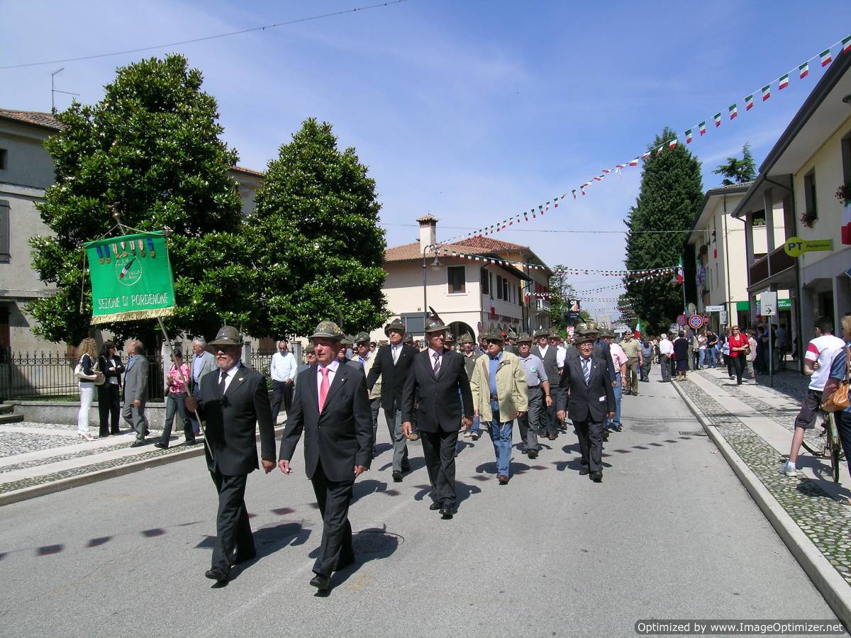 La scelta del luogo è apparsa subito appropriata nel ricordo del 90° Anniversario della Grande Guerra che vide Morsano direttamente investita dagli scontri sul Tagliamento dove, nel 1917, venne organizzata la prima resistenza dopo la rotta di Caporetto e per le successive sofferenze patite dalla popolazione durante i lunghi mesi d’occupazione nemica. Un programma denso di iniziative ha riempito le tre giornate che hanno accolto a Morsano al Tagliamento gli Alpini della nostra Sezione, i quali con la loro numerosa partecipazione hanno fatto da cornice premiando gli organizzatori per il loro grande lavoro ed impegno. L’Adunata Sezionale è, infatti, il momento nel quale gli Alpini si ritrovano per stare insieme e scambiare idee, discutere dei programmi, scambiare opinioni ed esperienze sulle varie attività dei Gruppi e quindi costruire la crescita della Sezione. A Morsano tutto questo si è verificato, grazie alle condizioni promosse dagli organizzatori che hanno creato i presupposti per una Adunata riuscita perfettamente, con il coinvolgimento delle istituzioni e delle associazioni del territorio, Questo conferma che i Gruppi sono la fucina nella quale si creano e si sviluppano le attività e le sinergie che sostengono la Sezione. La nostra cronaca inizia Sabato 7 giugno alle ore 18.00 con l’inaugurazione da parte del Sindaco di Morsano, Roberta Zanet, e del Presidente della nostra Sezione, Giovanni Gasparet, della Mostra “Storia delle Truppe Alpine” a cura di Guido Aviani ed Ilario Merlin e della “Rassegna d’Arte” a cura degli Artisti Alpini del Gruppo Pordenone Centro presentata da Claudia Tiburzio. Entrambe le iniziative hanno riscosso un notevole gradimento da parte del pubblico durante l’intero periodo di apertura dal 7 al 15 giugno, grazie alla qualità delle esposizioni, favorite anche dagli antichi locali restaurati a regola d’arte e messi a disposizione dal comune di Morsano. Presenti anche il Delegato della Zona Medio Tagliamento, Angelo Sciannelli, il Capogruppo di Pordenone Centro Luigi Diana e i Responsabili della Squadra Artisti, Andrea Susanna e Mario Carlini. Graditi ospiti anche l’ex Cons. Naz. Lucio Vadori, il Consigliere Ubaldi Mattia per la Sezione di Udine e l’ing. Aldo Innocente per la Sezione di Trieste che ha voluto donare un testo storico al Capogruppo Merlin. Dopo questo preambolo culturale, il programma riprendeva sabato 14 giugno alle 18.30 con la deposizione di Corone d’Alloro ai Monumenti ai Caduti delle frazioni di Bando, San Paolo e Mussons, con la presenza del Vice-Sindaco Giuliano Biasin e dell’Ass. Comunale Luciano Bauto, del Ten.Col. Piero Gresutta, del Presidente Sezionale Gasparet col Vice-Pres. A. Del Bianco ed il Segretario Regionale del Coordinamemnto Prot. Civile A.N.A. L. Rosolen. Gli spostamenti venivano effettuati con sicurezza e rapidità grazie all’ottima organizzazione logistica che aveva predisposto un Autobus doppio, capace di circa 100 persone. In questo modo la gran parte delle autorità e partecipanti poteva presenziare alle cerimonie senza problemi di spostamento e parcheggio. Dopo questi atti doverosi, la serata proseguiva a Morsano con un concerto del complesso strumentale “I Splumats” di Tarcento, tutti ex componenti della Fanfara della Brigata “Julia”, i quali allietavano il folto pubblico con un vasto e frizzante repertorio musicale nella piazza Daniele Moro. La premiazione delle classi e degli alunni che avevano partecipato al concorso artistico indetto dal locale Gruppo per la realizzazione di un bozzetto per un manifesto alpino, concludeva la serata, tra gli applausi degli abitanti del comune che avevano visto coinvolti tanti loro giovani. Ed eccoci giunti alla tanto attesa mattina del 15 giugno. Alle 9.00 in Municipio, iniziava il ricevimento delle numerose Autorità civili intervenute: l’On. I. Gottardo, il Vice-Presidente del Consiglio Regionale, M. Salvador, i Consiglieri regionali D. Narduzzi e P. Santin, gli Ass.ri Provinciali E. Grizzo e M. Maur Mair, l’Ass.re del Comune di Pordenone, L. Pasut, il Sindaco di Sesto al R., G. Sigalotti, l’Ass.re di San Vito al T., T. Centis, il Vice Sindaco di Cordovado, F. Toneguzzo, il Sindaco di Vajont, F. Manarin ed il Sindaco di Casarsa, A. Tubaro. Quelle militari comprendevano: per le Truppe Alpine, il Ten. Col. P. Gnesutta, il Magg. A. Esposito, il Cap. D. Colussi, il Cap. G.P. David, per la Tenenza della G. di F.di S. Vito al T., il M.llo A. Barracchia, la Rappr.za della C.R.I. guidata dal Cap. M. Martin e dalla Vice-Isp. II.VV. R. Momi. Per le Associazioni erano presenti: la Presidente Provinciale dell’Ass. Fam. Caduti e Disp. in Guerra, Cav. Julia Marchi, l’Ass. Mutilati ed Invalidi, l’AIDO e l’AVIS di Morsano. Nel corso del ricevimento, il Sindaco Roberta Zanet rivolgeva il saluto ufficiale ringraziando la Sezione di Pordenone per aver designato Morsano quale sede dell’Adunata Sezionale 2008, dicendosi onorata di ospitare questa importante manifestazione. Tracciava quindi un efficace panoramica sulle attività degli Alpini, evidenziando il valore delle loro iniziative in quanto di luminoso e concreto esempio per i giovani. Rispondeva il Presidente Sezionale Gasparet assicurando l’impegno della nostra sezione a continuare a muoversi sul territorio per promuovere la nostra Associazione ed i suoi valori. A questo punto, come da programma, si procedeva in corteo fino al Monumento ai Caduti di Morsano dove venivano deposte due Corone d’Alloro da Alpini vestiti in divisa della Grande Guerra, mentre veniva suonato “il Silenzio”. Successivamente, il corteo procedeva fino alla zona di ammassamento in località Saletto. Finalmente, il momento tanto atteso: la Fanfara di Orzano apriva la sfilata, imponente, lungo il viale che da Saletto porta a Morsano. Un colpo d’occhio stupendo: i Gonfaloni dei Comuni, i Labari e le bandiere delle Associazioni, i Vessilli delle Sezioni di Brescia, Cividale, Padova, Treviso, Udine, Venezia