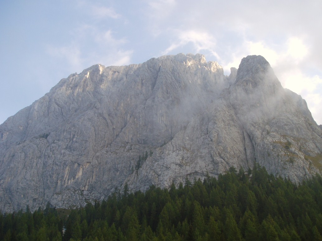 Oltrepassiamo il rifugio sopra menzionato ed in circa un’ora giungiamo al Passo Sesis. Troviamo resti di trincee, di muretti, di fortificazioni. Sono ancora evidenti i segni della Guerra, la Grande Guerra. Sono passati 90 anni ma le ferite dell’uomo inferte alla montagna sono rimaste inalterate. Sono li a tramandarne per ogni tempo la memoria, a ricordare il sacrificio di quanti hanno combattuto. Il 28 maggio 1915 una pattuglia di Alpini salì fino al Passo e si spinse fino al Passo Castello dal quale dominava il Passo dell’Oregone. Non c’erano tracce di nemici. Nei giorni successivi gli austriaci provvidero a presidiare stabilmente il Passo Sesis con pattuglie giornaliere, senza tenerlo occupato. Il maggiore Piva, comandante il battaglione degli Alpini Dronero, venuto a conoscenza da un informatore dell’intenzione del nemico di occupare il Passo, dà l’immediato ordine ai suoi Alpini di anticipare il nemico. L’alba del 4 giugno gli Alpini partono per l’omonima valle e senza alcuna perdita da parte nostra, occupano Passo Sesis: Ove costruiscono un presidio fisso ed occupano pure la Spalla Est del Peralba dalla quale possono dominare il Passo del Castello ed il Passo dell’Oregone. La vicina postazione austriaca si sente minacciata. Pronta ed immediata fu la reazione nemica. La notte dell’ 11 giugno gli austriaci partono all’attacco, guidati dal caporale Fellner e dall’appuntato Lipoth, poi decorati di medaglia d’oro. Lipoth ed i suoi uomini attaccano frontalmente, Fellner con i suoi si arrampicano su una torre che sovrasta la Spalla Est e da lì colpiscono gli italiani. Poi annodatosi ad una fune si cala nel vuoto e lancia le bombe a mano sui nostri Alpini dove si erano riparati. Decimati, i nostri soldati sono costretti a ritirarsi ed il Passo rimase in mano austriaca. Oltrepassiamo il Passo Sesis, siamo sul versante Nord in direzione del Passo del Castello. Seguiamo il sentiero per un breve tratto, poi, bruscamente volgiamo a sinistra. Oltrepassiamo resti di trincee e postazioni che si mimetizzano con il mare di piastre scure e ferrigne e saliamo superando salti ripidi ed accidentati. Sopra di noi un imbuto detritico ci porta velocemente verso il crinale Nord Est. Continuiamo fino all’ultimo canalone e, aiutati da una corda metallica, arriviamo sulla dorsale nord del Peralba. Qui i segni ed i ricordi si fanno incalzanti. Siamo nel punto in cui rozzi gradini scavati nella roccia, una galleria e resti di attrezzature testimoniano la via utilizzata in guerra dagli austriaci per raggiungere la sommità del monte. Appena usciti dallo stretto colatoio troviamo la targa che ricorda Fabio Monti e, vicino, quella che ricorda la salita di papa Wojtyla. Il peso dello zaino sulle spalle costringe lo sguardo sui passi che, uno dopo l’altro, guadagnano il Sole. In breve, per facili rocce, giungiamo in vetta. Lì c’è una croce e una campana a ricordo, a monito, a suggellare il sacrificio di quanti hanno combattuto e perso la vita in nome della propria patria, in nome di un’ideale, in nome di un dovere.