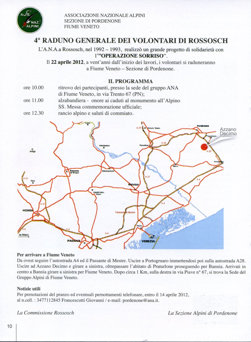 Associazione Alpini Pordenone - Vial Grande 5 C.P.62 - Pordenone - Cod.Fisc.80010820936 Tel.0434 538190 Fax.0434 539696