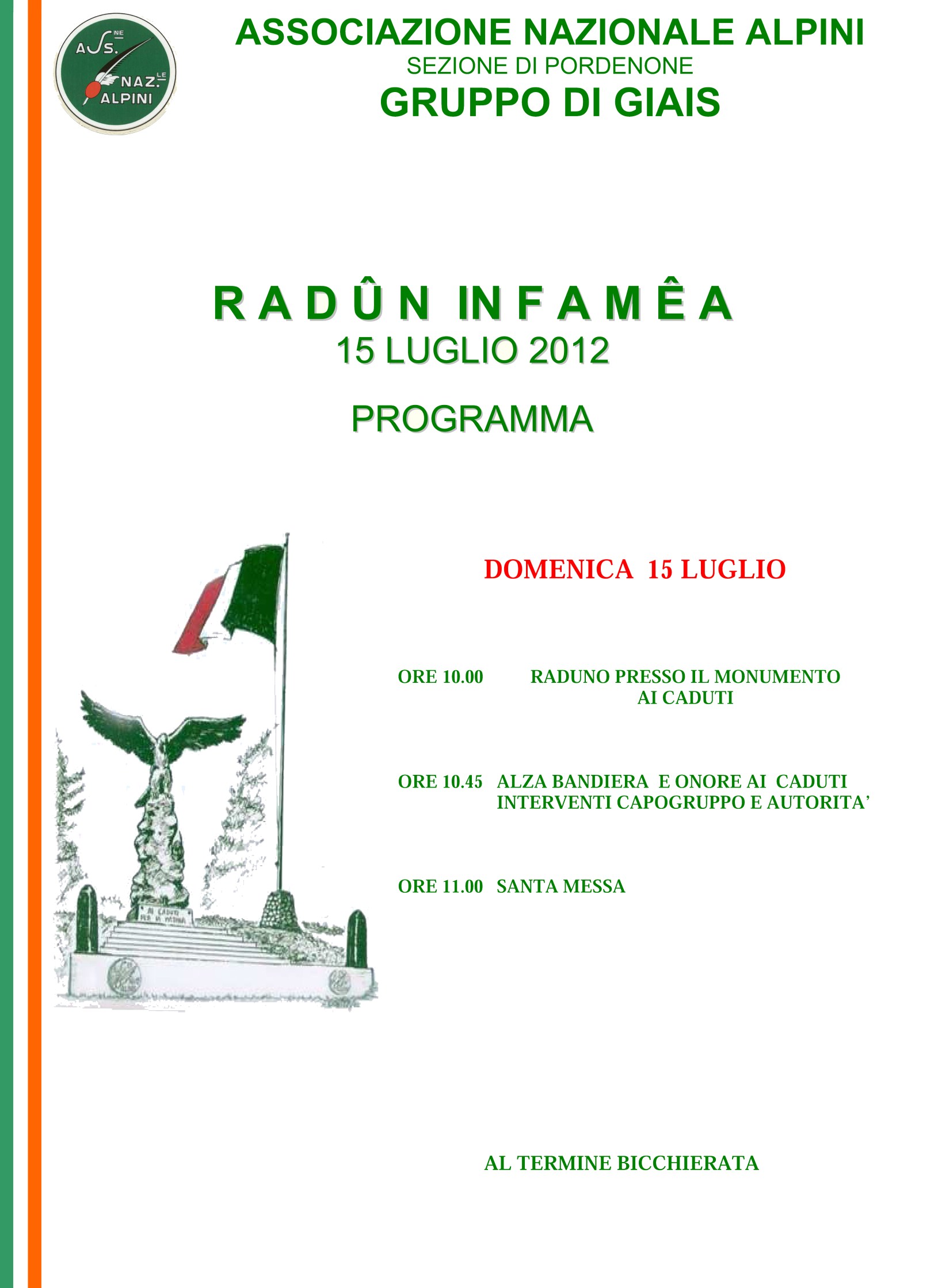 Domenica 15 luglio 2012R A D Û N IN F A M Ê AADUNATA DEL GRUPPO DI GIAIS