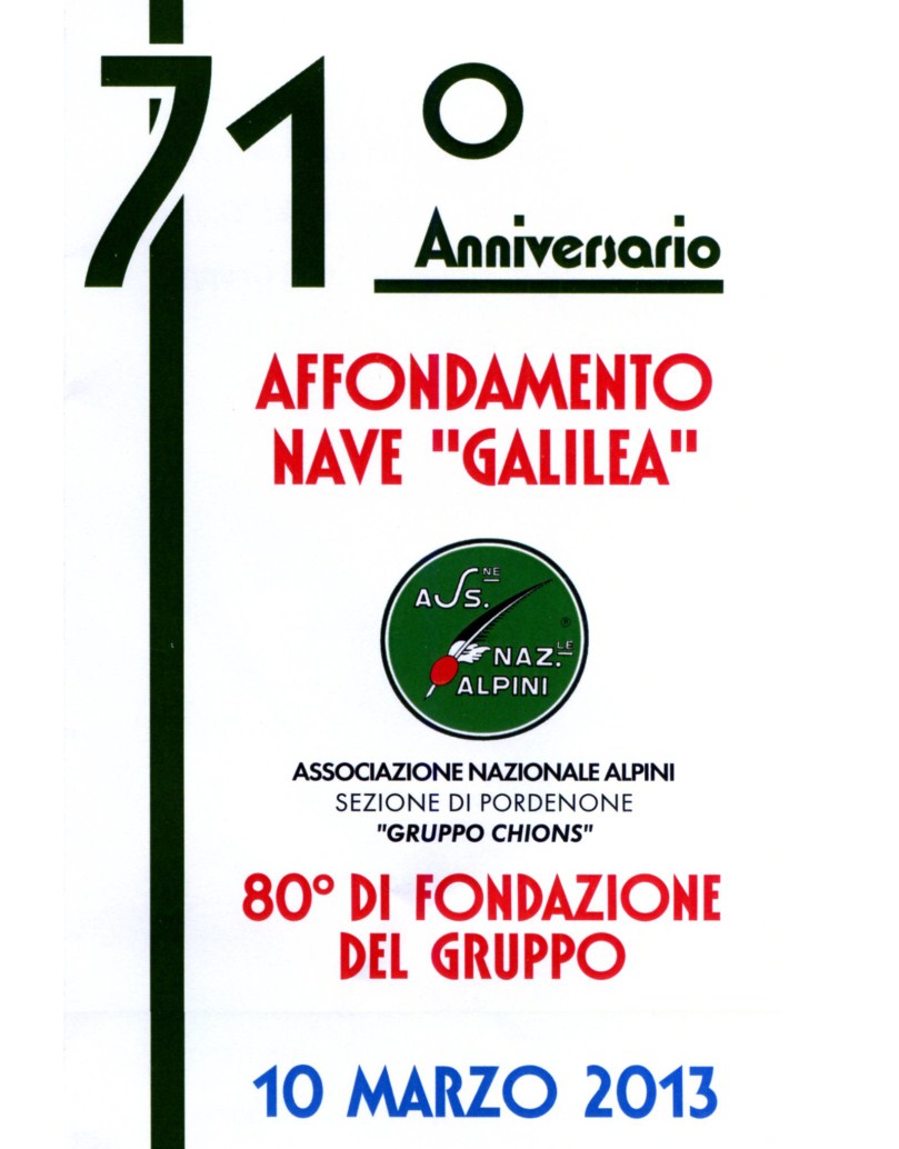 CHIONS - 71° ANNIVERSARIO DEL "GALILEA" - Presenzierà il Presidente Nazionale dell'A.N.A. Corrado Perona
