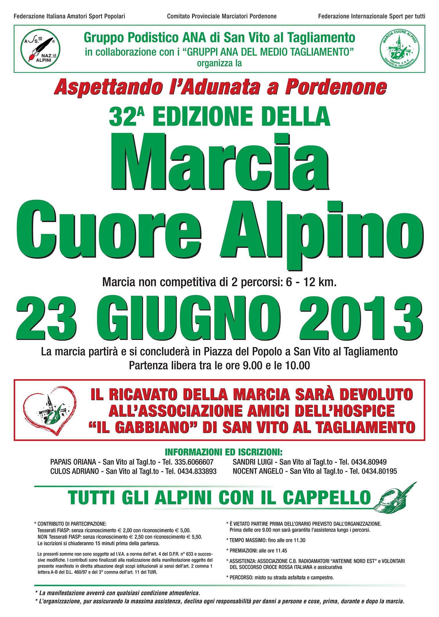 IL RICAVATO DELLA MARCIA SARA' DEVOLUTO ALL'ASS. AMICI DELL'HOSPICE IL "GABBIANO" DI S.VITO AL TAGLIAMENTO.