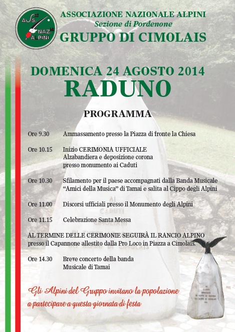 ore 10.30 Sfilata per il paese e salita al Cippo degli Alpini