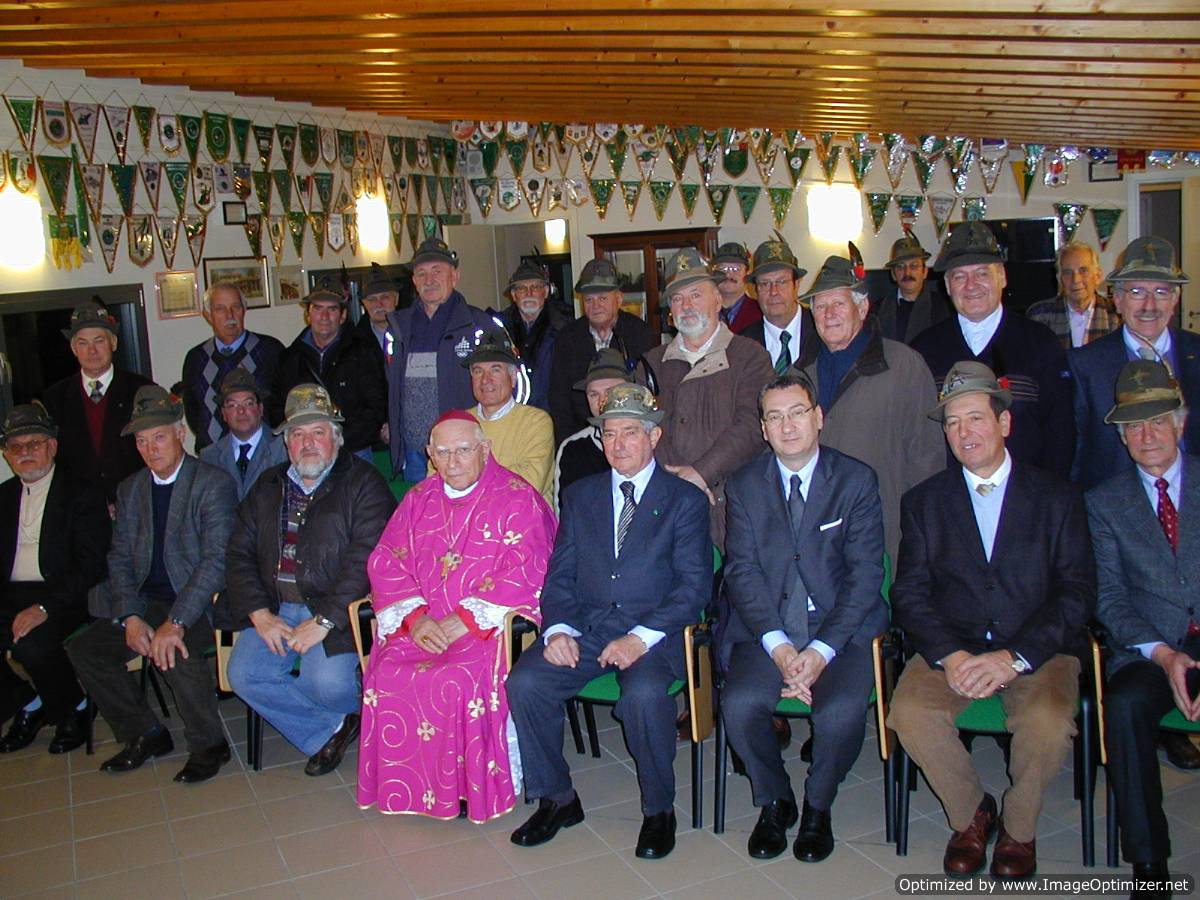 L’improvvisa ed abbondante nevicata cominciata nel pomeriggio di venerdì 17 dicembre 2010 ha messo a dura prova la nostra città, mettendo tutti a dura prova, compreso il nostro Vescovo Poletto, l’Ass.re Provinciale Giuseppe Bressa ed anche il nostro Sindaco Sergio Bolzonello. Tuttavia, il loro affetto per gli Alpini ha fatto superare ogni ostacolo e la S. Messa è potuta iniziare in perfetto orario. Durante l’omelia, Mons. Ovidio Poletto ha ricordato il sostegno continuo che gli Alpini offrono alle parrocchie della diocesi per le quali sono un riferimento concreto. Al termine della S. Messa, il Vescovo Poletto si è voluto mescolare agli Alpini per immortalare l’avvenimento nella foto a margine. Poi, si è anche fermato con noi per dividere il rancio alpino, preparato dagli imbattibili cuochi del Gruppo di San Giorgio della Richinvelda, condito soprattutto con allegria e solidarietà. L’atmosfera famigliare della nostra sede è piaciuta al nostro illustre ospite che ha promesso di ritornare perché con gli Alpini si sta bene.