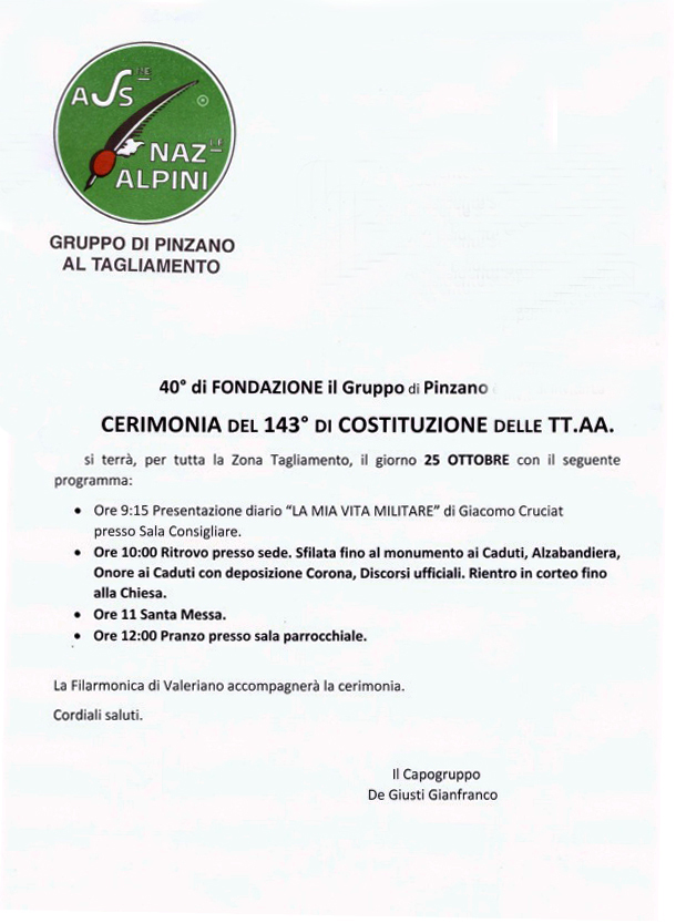 Associazione Alpini Pordenone - Vial Grande 5 C.P.62 - Pordenone - Cod.Fisc.80010820936 Tel.0434 538190 Fax.0434 539696
