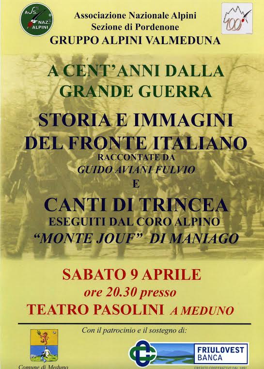 A cent'anni dalla Grande GuerraStoria e immagini del fronte italianoRaccontate da Guido Fulvio AvianiCanti di trincea.Eseguiti dal Coro Alpino "Monte Jouf" di Maniago
