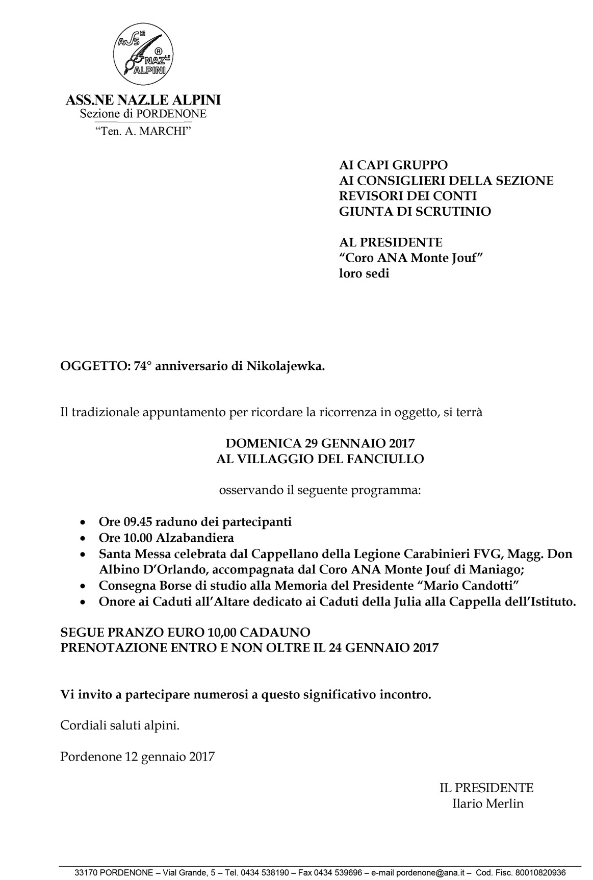 74° ANNIVERSARIO DI NIKOLAJEWKA