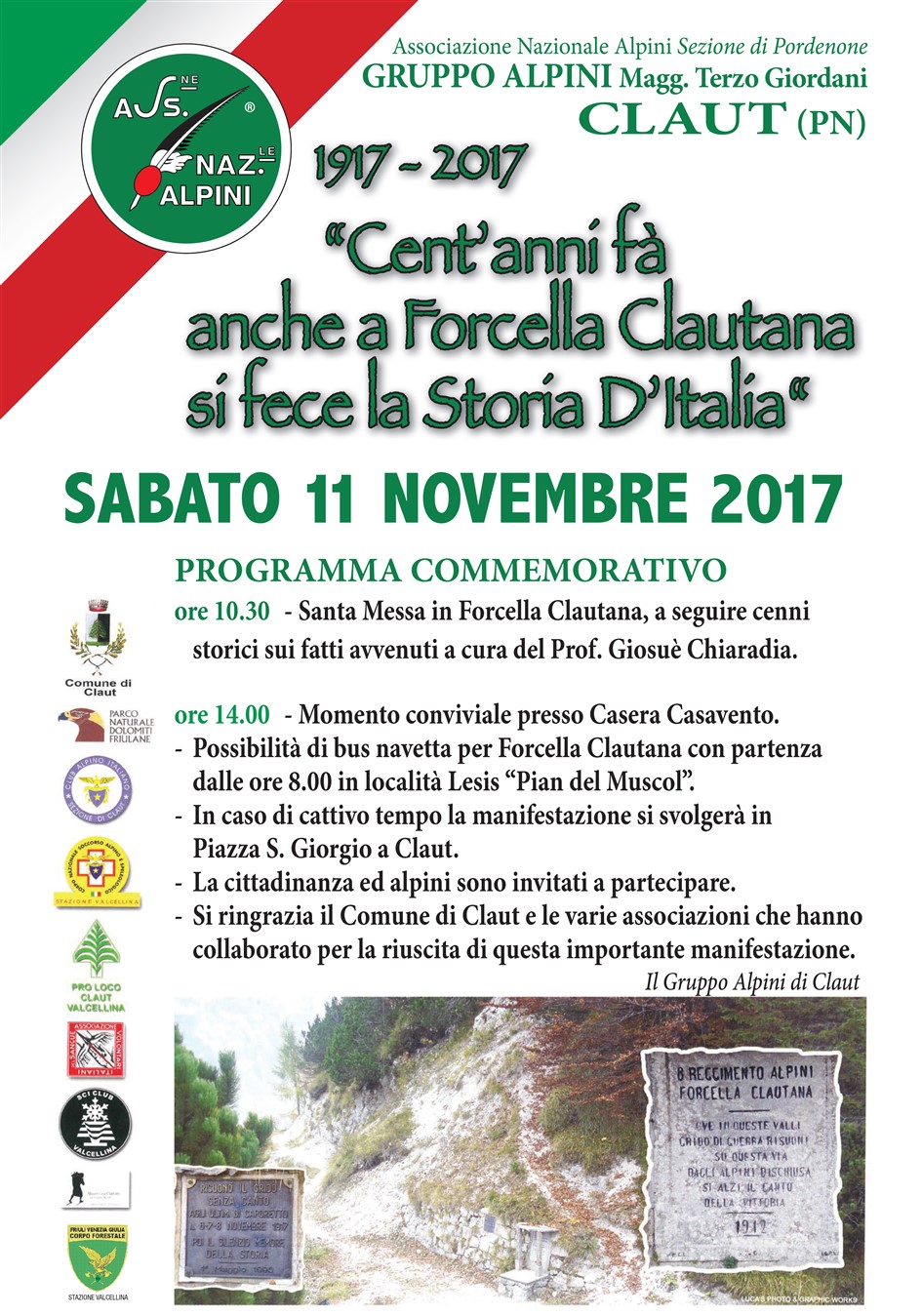 1917-2017 CENT'ANNI FA' ANCHE A FORCELLA CLAUTANA SI FECE LA STORIA DELL'ITALIA