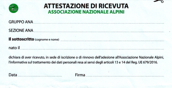 Caro associato, è stato pubblicato su L'Alpino questo inserto staccabile relativo al documento informativo sulla gestione dei dati personali in possesso dell'Associazione Nazionale Alpini.