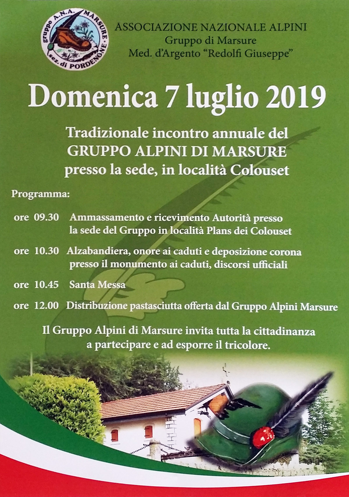 ore 12.00 Distribuzione pastasciutta offerta dal Gruppo Alpini Marsure