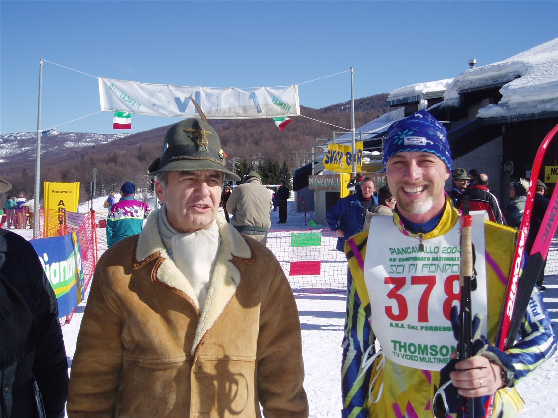 Nella foto lo vediamo ritratto assieme all'attuale Comandante dell'8° Rgt Alpini il Colonnello David Colussi, quando è venuto al Piancavallo per la Gara Nazionale di Sci da Fondo il 14 febbraio 2004.