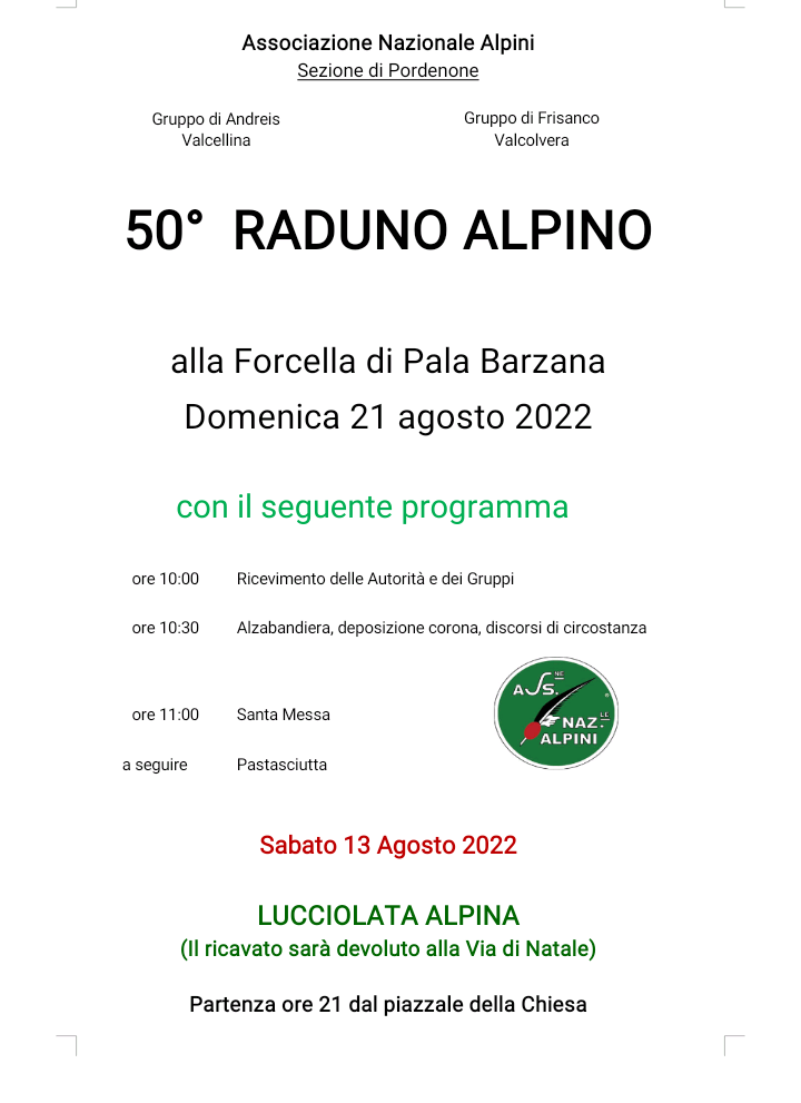 Associazione Alpini Pordenone - Vial Grande 5 C.P.62 - Pordenone - Cod.Fisc.80010820936 Tel.0434 538190 Fax.0434 539696