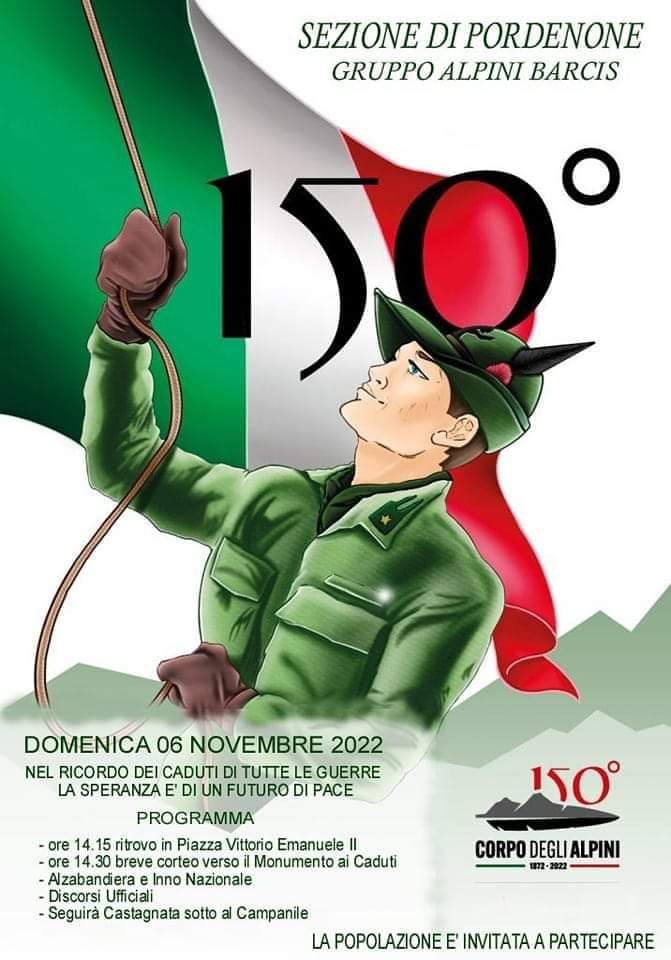 Programma: dom 6 nov 2022 ore 14.15 Ritrovo in Piazza Vittorio Emanuele II, ore 14.30 Breve corteo verso il Monumento ai Caduti, Alzabandiera e Inno nazionale Discorsi ufficiali Seguirà Castagnata sotto il campanile