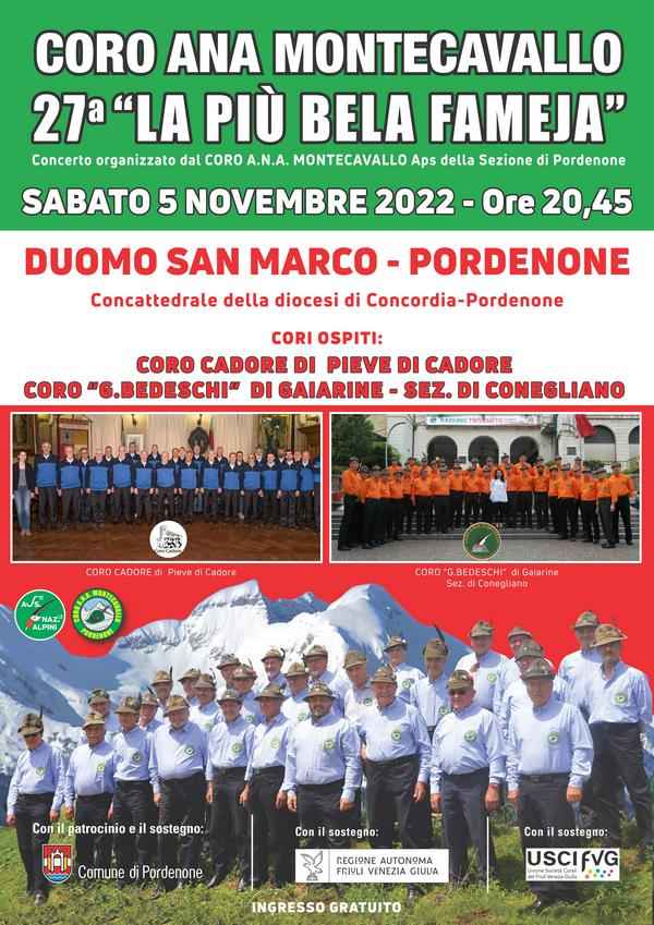 Programma: sab 05 nov 2022 ore 20.45 Duomo San Marco - Coro Cadore di Pieve di Cadore - Coro "G.Bedeschi" di Gaiarine - Coro A.N.A. Montecavallo di Pordenone