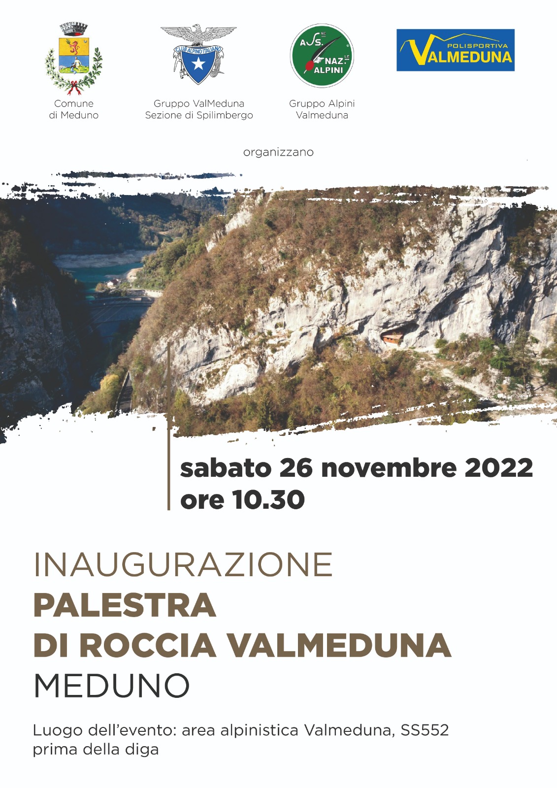 ore 10.30 Presso l'area alpinistica Valmeduna - SS 552 - prima della Diga.