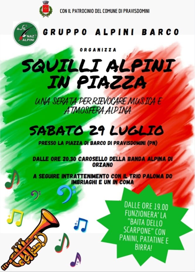 PROGRAMMAsab 29 lug 2023ore 20.30 - Carosello della Banda Alpina di Orzanoa seguire intrattenimento con il trio Paloma