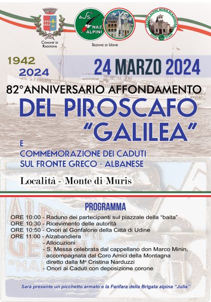 MURIS DI RAGOGNA - 82° AFFONDAMENTO NAVE "GALILEA"