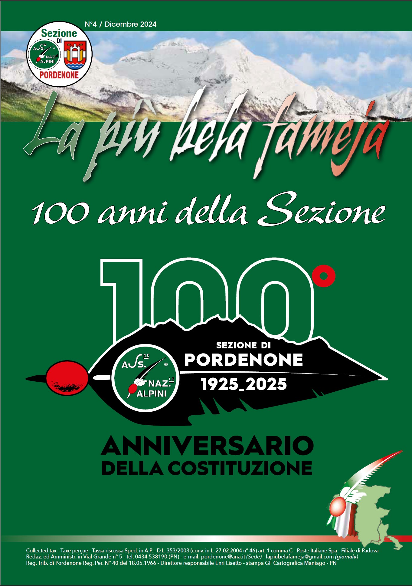 E' in fase di invio il n° 4 del nostro giornale La Più Bela Fameja, per chi volesse intanto sfogliarlo elettronicamente lo trovate in: https://www.alpini-pordenone.it/?q=lista-redazionali
