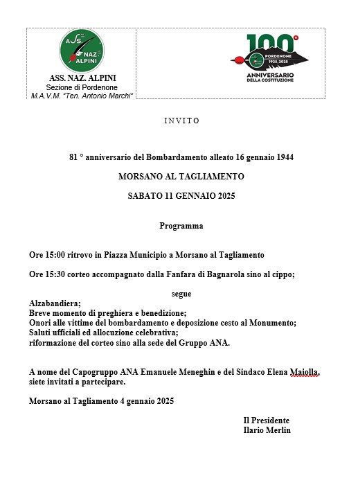 Associazione Alpini Pordenone - Vial Grande 5 C.P.62 - Pordenone - Cod.Fisc.80010820936 Tel.0434 538190 Fax.0434 539696