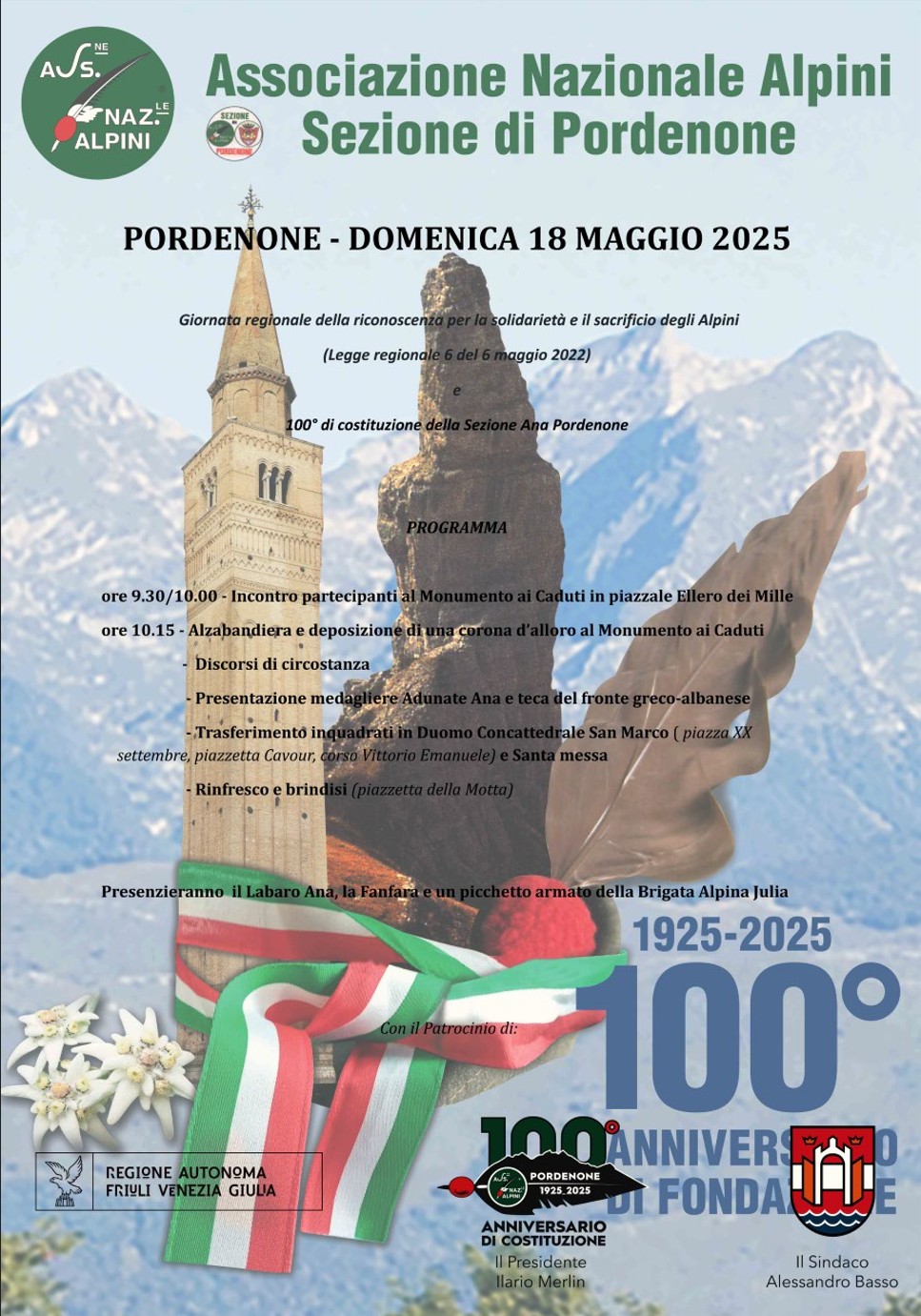 Presenzieranno il Labaro Nazionale Ana, un picchetto armatao della Brigata Alpina Julia