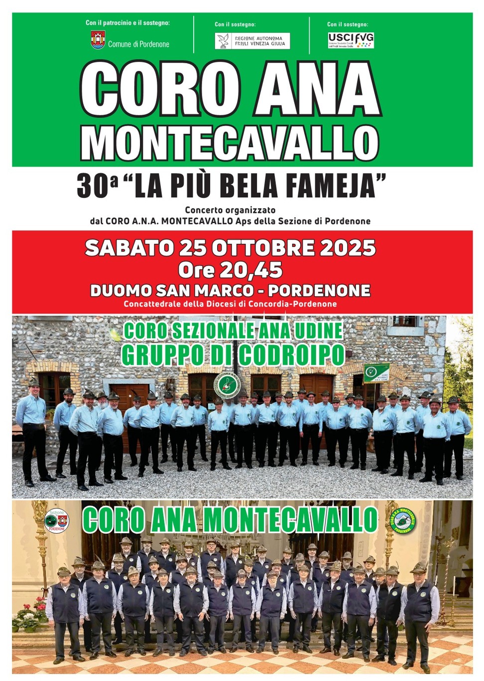 PROGRAMMAsab 25 ott 2025Ore 20.45 - Duomo S.Marco - Concerto - Coro Sezionale ANA Udine Gruppo di Codroipo - Coro ANA Montecavallo