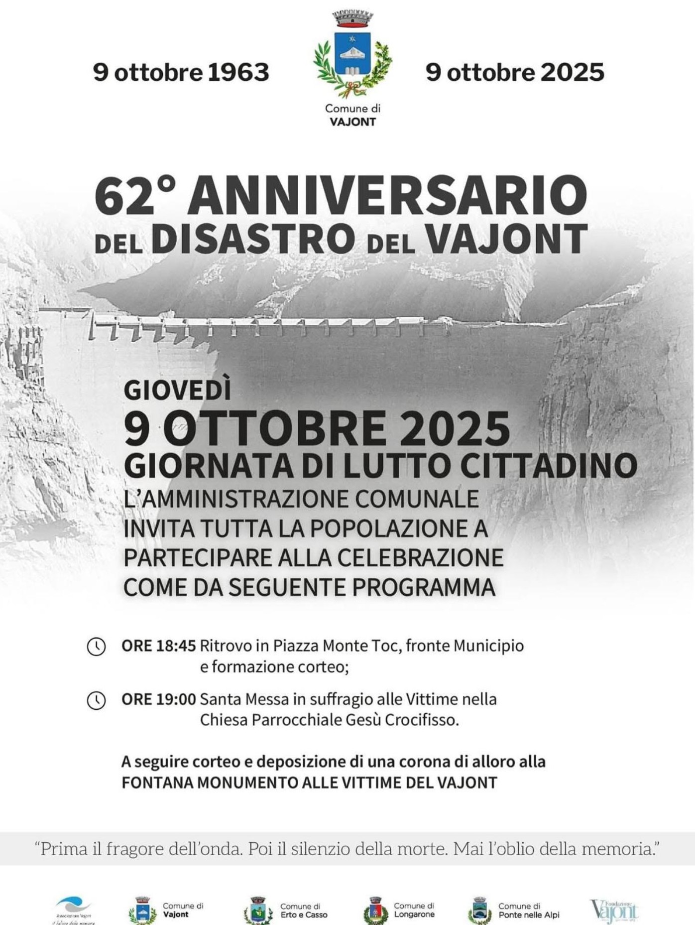 62° ANNIVERSARIO DELLA TRAGEDIA DEL VAJONT