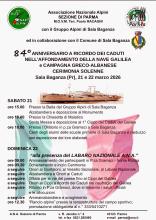 SALA BAGANZA (PR)84° Anniversario affondamento "Galilea"Saranno effettuati due pullman uno partirà il sabatoe l'altro la domenica