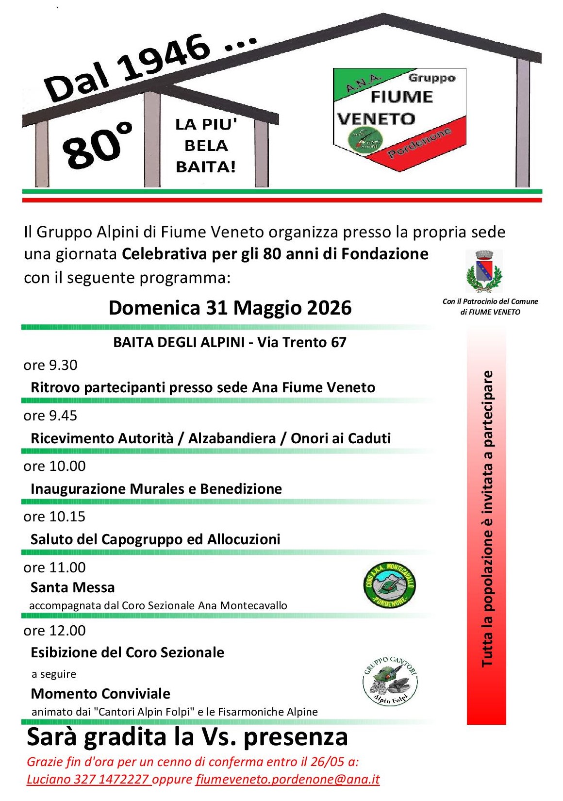 ore 09.30 Ritrovo partecipanti presso sede Ana Fiume Veneto