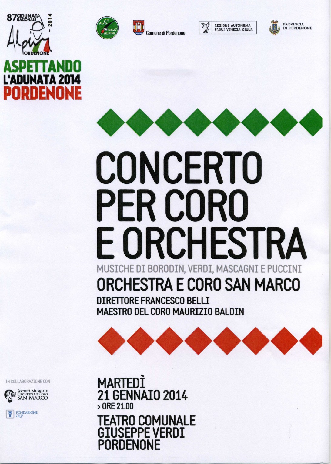 CONCERTO PER CORO E ORCHESTRAMARTEDI' 21 GENNAIO 2014A PORDENONEPRESSO IL TEATRO VERDIORE 21.00