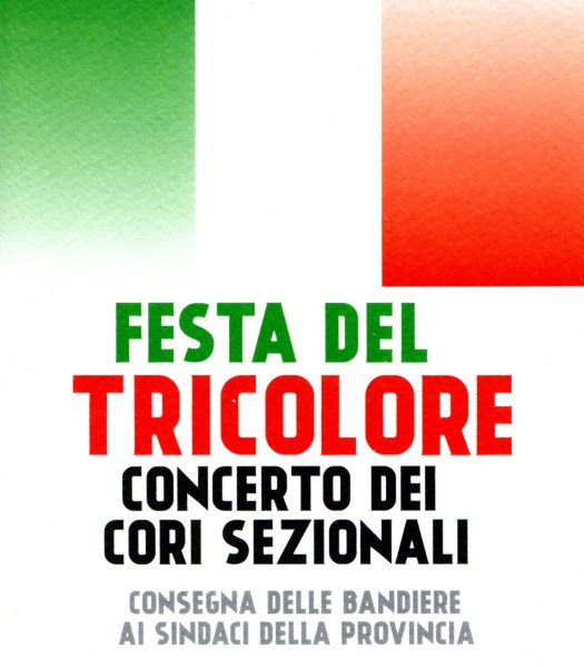 FESTA DEL TRICOLORElunedì 17 marzo 2014Auditorium ConcordiaPROGRAMMADalle ore 20,30Esibizione a turno dei 4 Cori SezionaliConsegna della Bandiere ai Sindaci del 51 Comuni della Provincia di Pordenone e rispettivi Capigruppo.