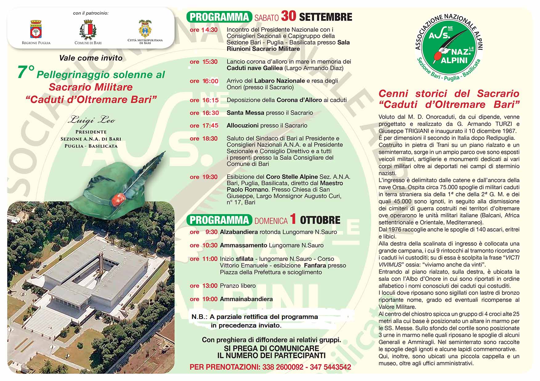 Ricordando che molti Alpini della Julia riposano al sacrario di Bari, siamo fiduciosi in una ampia partecipazione.